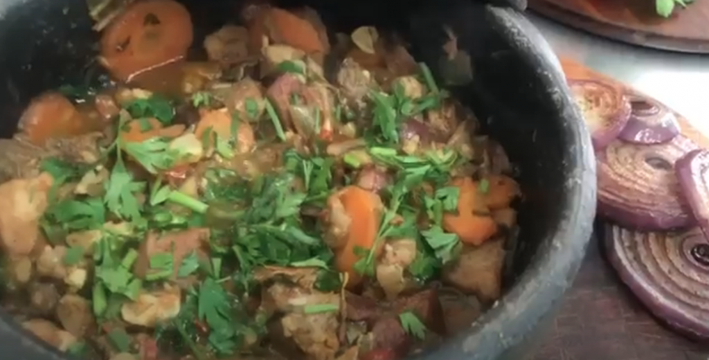 Como o prato encantou a todos, quis saber a origem do “entrevero de pinhão. Trata-se de um dos pratos mais tradicionais em Lages, na Serra de Santa Catarina. O prato tem origem na língua espanhola platina e significa confusão, mistura desordenada, cuja palavra descreve bem o prato que leva uma quantidade enorme de ingredientes e proteínas cujas palavras descrevem bem o prato. Ele é feito a base de pinhão cozido e descascado e picado grosseiramente, mais diversos cortes de carnes suínas, bovinas e frango.