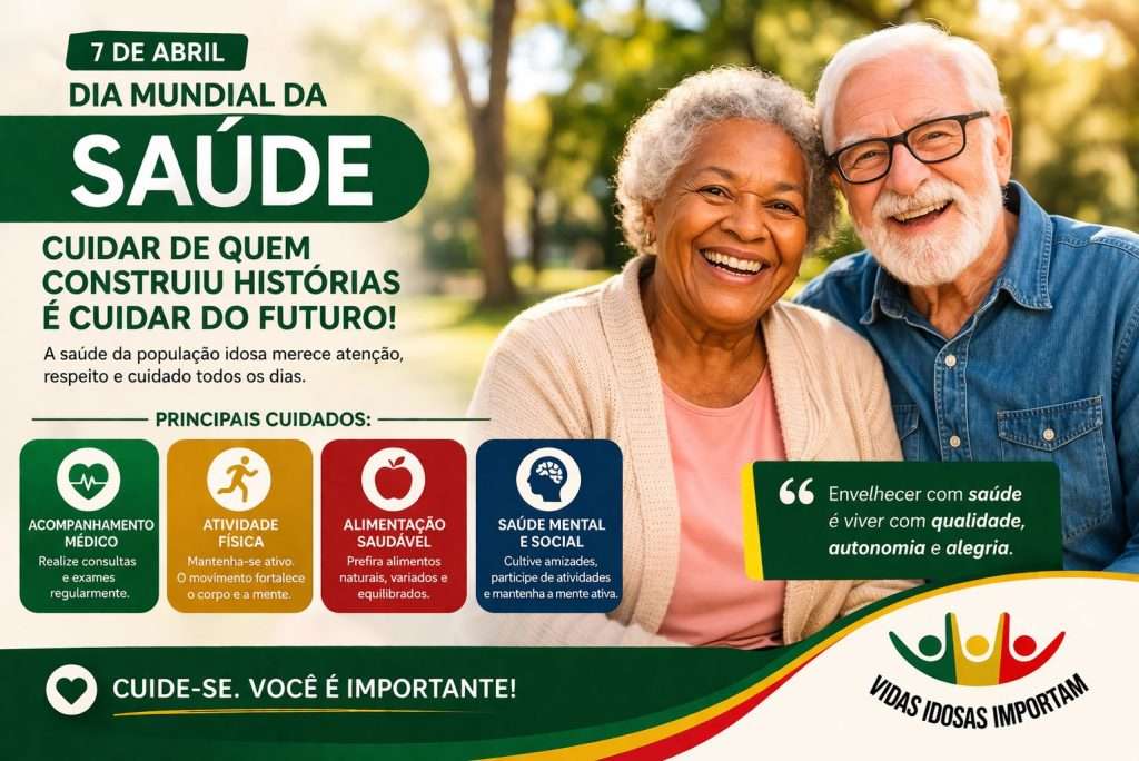 O Dia Mundial da Saúde é uma oportunidade para reforçar a importância do cuidado integral com a saúde. Nesta campanha, o foco está na população idosa, promovendo envelhecimento saudável, digno e com qualidade de vida.