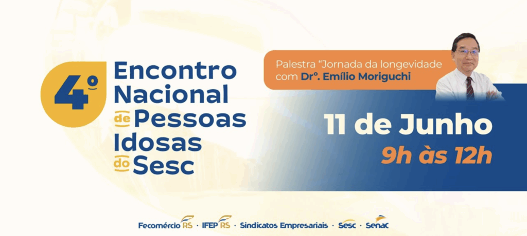 Na programação, o destaque é a palestra “Jornada da longevidade: a busca por uma vida mais longa, plena e feliz”, ministrada pelo médico geriatra e pesquisador Emílio Moriguchi. O palestrante é doutor pela Tokai University School of Medicine, no Japão, e é reconhecido internacionalmente por sua contribuição aos estudos sobre envelhecimento saudável. Ele coordenou o Projeto Veranópolis — uma das iniciativas mais bem-sucedidas do Brasil na promoção da longevidade e qualidade de vida.