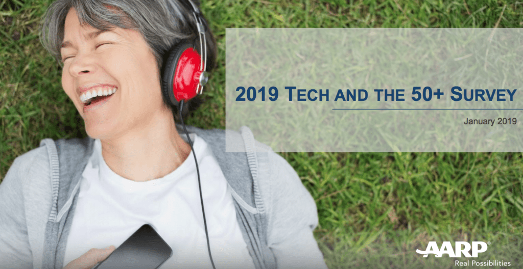 Quanto à tecnologia na vida doméstica, cerca da metade dos norte-americanos mais velhos possui uma TV inteligente (definida como digital e conectada à Internet) e 9 milhões a mais planejam comprar uma dentro de um ano. A popularidade de assistentes domésticos, como Google Home ou Amazon Alexa, está crescendo. A pesquisa também constatou que quase 1 em cada 7 norte-americanos com mais de 50 anos possui um dispositivo desse tipo.